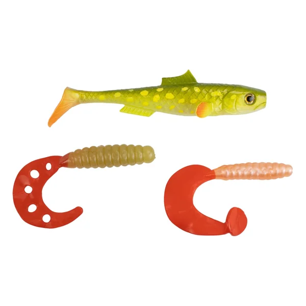 Dieses günstige und doch auf den Zielfisch abgestimmte Angelset richtet sich an alle Einsteiger, Hobbyangler und Gelegenheitsfischer. In diesem Set ist alles enthalten, um sofort mit dem Angelspass zu beginnen. Eine Rute mit Rolle, welche mit der mitgelieferten Schnur bespult werden kann. Dazu gibt es ein Stahlvorfach, einen Gummifisch (Farben können varrieren), zwei Gummitwister, zwei Jigköpfe, zwei Löffelblinker, vier Wobbler (Modelle/Farben können varrieren) und um das ganze Set abzurunden eine Kunstköderbox.
