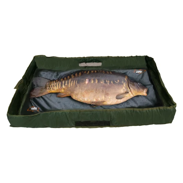 Die Karpfen Abhakmatte wurde mit einem leichten und glatten Polyester Gewebe gefertigt und verfügt über eine ultraleichte Polsterung und einen erhöhten Rand.