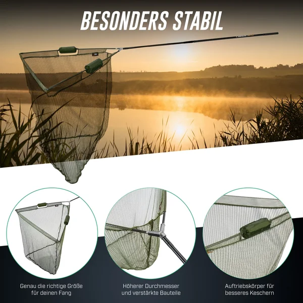 Eine nicht zu große Maschenweite von 10x15mm garantiert ein einfaches Handling des Fisches beim Karpfenangeln, da das Wasser sehr schnell daraus abfließen kann und der Fisch dennoch auf den kleinen Maschen am Netzboden weich aufliegt. Der Strahl der Rückenflosse verfängt sich nicht in den Maschen, und auch der Haken kann einfach aus den Maschen wieder entfernt werden, sollte er sich einmal hier verfangen. Das praktische Transportmaß spart Ihnen teure Sperrgutkosten und ermöglicht einen bequemen Transport.