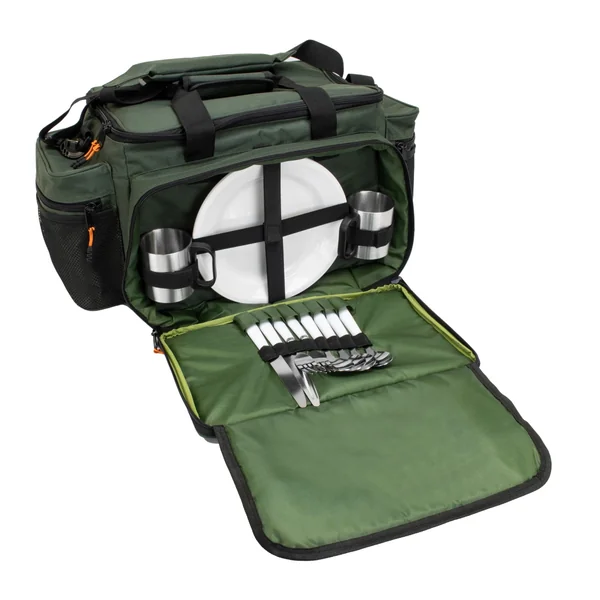 Wenn Sie zum Angeln unterwegs sind, darf es auch an der richtigen Ausstattung nicht fehlen. Und dazu gehört auch das richtige Zubehör für den Snack zwischendurch. Die BAT-Tackle Diner Carryall Bag packt alles, was Sie für unterwegs für die Mahlzeit mitnehmen möchten. Der Inhalt hält alles bereit, wie zum Beispiel Outdoor Geschirr aus Aluminium bzw. Edelstahl und Kunststoff, sowie Ihr eigenes Zubehör. Die Diner Bag packt allerdings auch noch ein paar grundlegende Dinge die Sie brauchen, wie das dazugehörige Küchengeschirr. Dank dem Geschir Set sind Sie unterwegs immer bestens ausgestattet.