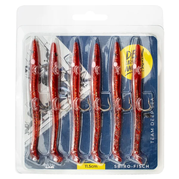 In einer aufregenden Zusammenarbeit bringen Team Deep Sea und Dein Lieblingsangler den neuen Sbiro-Fisch auf den Markt – ein innovativer Gummiköder, der speziell für das Sbirolino-Angeln entwickelt wurde. Mit seinem schlanken, 11,5 cm langen Körper im authentischen Sandaal-Design, ist dieser Köder ein echter Fangmagnet. Erhältlich in zwei verschiedenen Farben, bietet er genau die richtige Flexibilität, um Fische in verschiedenen Gewässern zu fangen.
