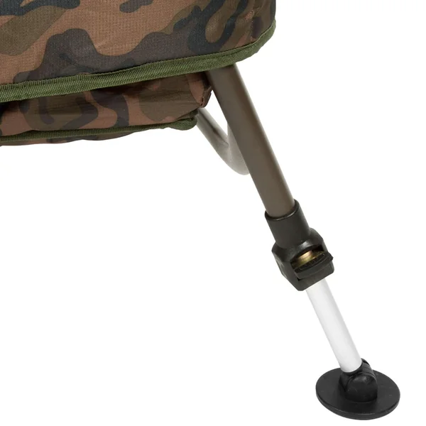 Durch die beweglichen Schlammtellerfüße kann die Carp Cradle Abhakmatte nicht im weichen Untergrund einsinken. Das Außenmaterial mit Camouflage Muster besteht aus hoch reißfestem Ripstop Nylon. Dieses Material ist besonders leicht und sehr robust und kommt daher bspw. auch bei der Herstellung von Gleitschirmen zum Einsatz. Zudem ist es schön weich, so dass die Fischhaut nicht beschädigt wird.
