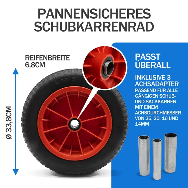 Pannensicheres Schubkarrenrad – immer einsatzbereit, ganz ohne Luft!