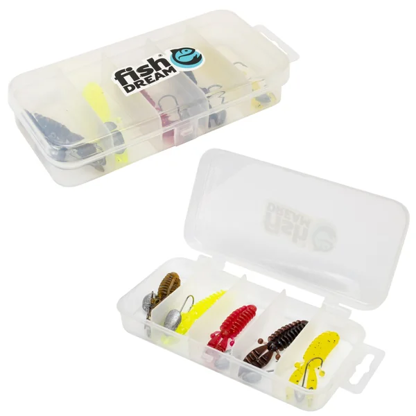 | Inhalt | 5x Gummifisch, 5x Jighaken, 1x Box |