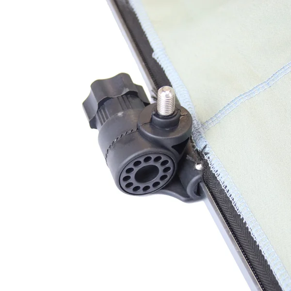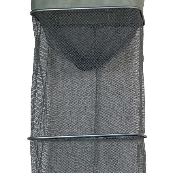 Am Keschereingang am obersten Ring befindet sich ein winkelverstellbares Gelenk mit einem Gewinde. Dieses Gewinde dient dazu, den Setzkescher am Ufer zu befestigen, so dass Sie ihn von dort aus mit Fischen füllen können. Diese Befestigung kann entweder an einem Bankstick vorgenommen werden, der am Ufer in die Erde eingebracht wird, oder wie es die professionellen Angler bevorzugen an einer speziellen Halterung an einem Angelsitz oder einer Angelplattform / Sitzkiepe. Die Maschen des Netzes sind knotenlos, so dass die empfindliche Haut der Fische nicht erletzt wird.