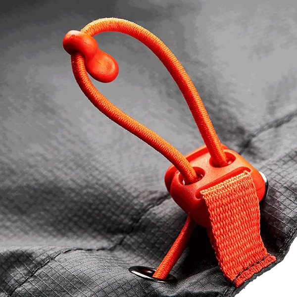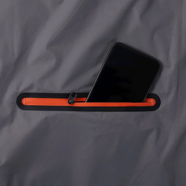 Wenn die Ultralight Jacke gerade nicht benötigt wird, lässt sie sich einfach in der auf dem Rücken angebrachten Transporttasche unterbringen und an einem Hüftgurt oder in einer Tasche verstauen.