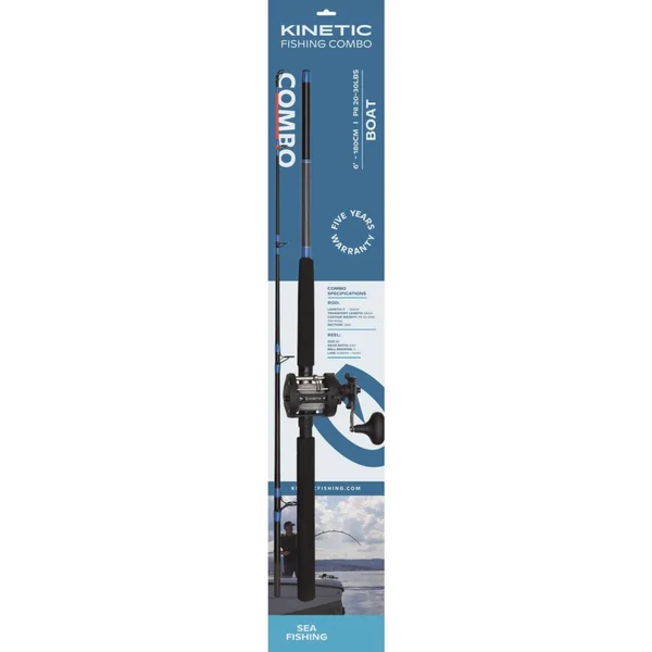 Sparen Sie Geld und legen Sie sich mit der Kinetic Boat Fishing-Combo eine hervorragendes Set zum Salzwasserfischen zu. Dieses Set kombiniert eine hochwertige Multirolle mit einer leistungsstarken Rute, um Ihre Suche nach Ihrem Großfisch erfolgreich zu gestalten. Die Kinetic Boat-Rolle ist wie ein Panzer gebaut, jedoch leichter als die meisten Rollen in ihrer Klasse. Ihr sofort verstellbares Hebelbremssystem verwendet eine Sternbremse, die für die Belastung bei langen Drills und tiefem Fischen ausgelegt ist. Die kraftvolle Rute besteht aus einem röhrenförmigen 2-teiligen Fiberglas-Blank, der es spielend mit jedem Großfisch aufnehmen kann. Die EVA-Griffe ermüden Ihre Hände während des Drills nicht, und ein Rollenhalter aus Graphit sichert die Rolle für einen sorgenfreien Angeltag.