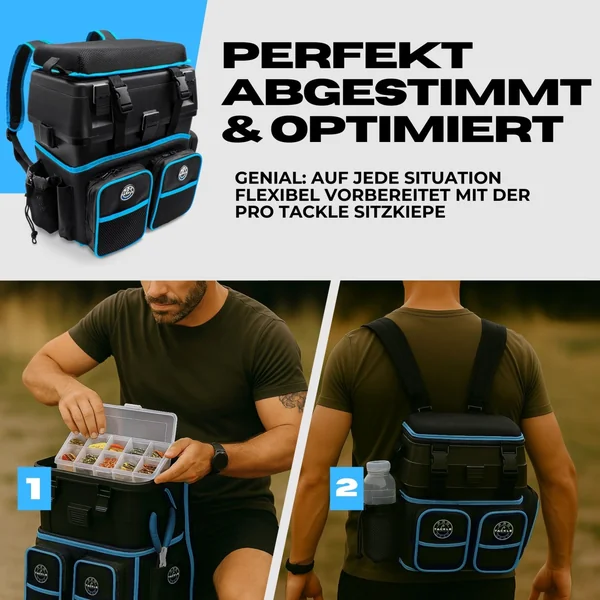 Die Pro Tackle Allround Sitzkiepe in Kombination mit dem Pro Tackle Rucksacksystem ist die perfekte Lösung für alle, die am Wasser mobil, flexibel und dennoch bestens organisiert unterwegs sein möchten. Ob für kurze Ansitze, Tagestouren oder spontane Sessions – dieses Set bietet dir alles, was du brauchst.