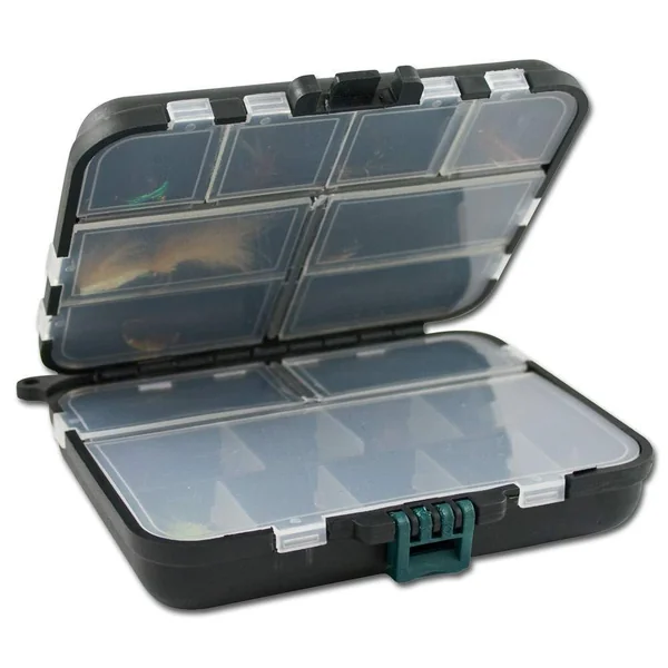 Pro Tackle Boxes sorgen für Ordnung in Ihrer Angelausrüstung mit verschiedenen Abmessungen und Einteilungen werden Sie aus diesem Programm sicherlich das richtige für sich finden. Diese können Zuhause gestapelt, in der Anglertasche verstaut oder einfach so mitgenommen werden. Die Köderbox 1050 ist für kleineres Zubehör gedacht, wie beispielsweise Wirbel, Haken, Kleinköder, kleine Bleie, Sprengringe o.ä.. Die innere Aufteilung trennt die Köderbox 1050 in insg. 11 Fächer.