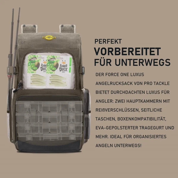 Durchdachter Luxus Angelrucksack aus der Force One Reihe von Pro Tackle