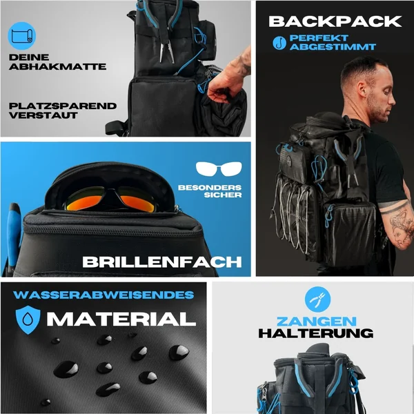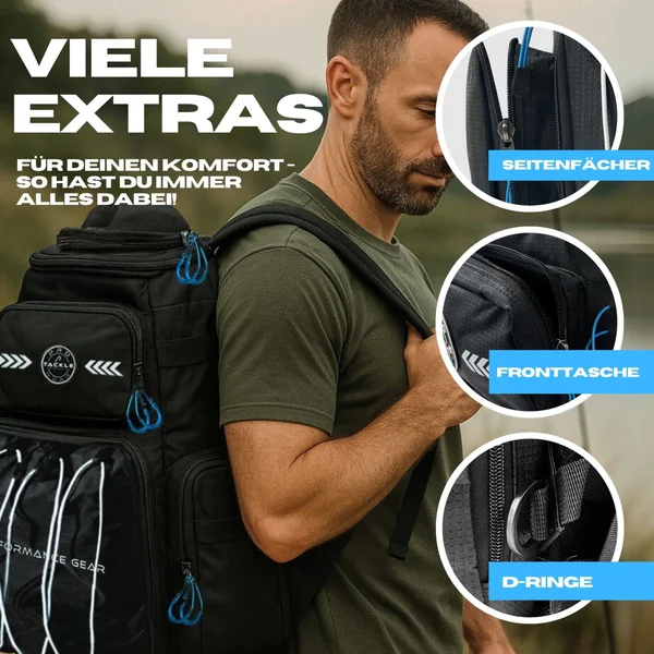 Der Pro Tackle Rucksack vereint Komfort, Mobilität und durchdachte Funktionalität in einem. Ob kurze Session am Wasser oder längere Tour – dieser Rucksack bietet dir alles, was du brauchst, um deine Ausrüstung sicher und strukturiert zu transportieren.