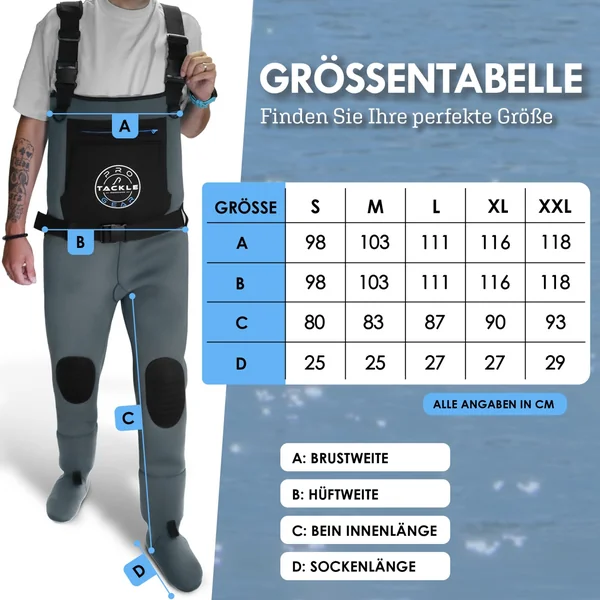 Mit der Waters Strider II St. Foot Neopren Wathose bringt Pro Tackle eine verbesserte Version der bewährten Water Strider Wathose auf den Markt. Das Modell vereint das bewährte Konzept der Vorgängerversion mit neuen Details und modernen Design-Akzenten, um den Ansprüchen ambitionierter Angler gerecht zu werden. Die Wathose punktet dabei nicht nur durch Funktionalität, sondern auch durch ihren bequemen Tragekomfort und eine hochwertige Verarbeitung.