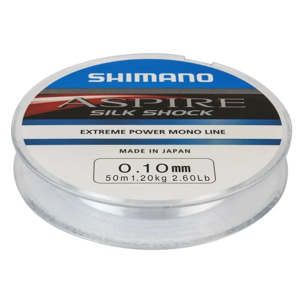 Die Shimano Aspire Silk Shock ist eine monofile Angelschnur, die durch Shimanos innvative Silk Shock Technologie fast komplett durchsichtig ist. Dadurch wird die Sichtbarkeit unter Wasser nochmals gesenkt ohne wie bei Fluorocarbon Schnur an Tragkraft oder geschmeidigkeit zu verlieren. Denn die Silk Shock Schnur ist hoch Abriebsfest und schön weich und geschmeidig.
