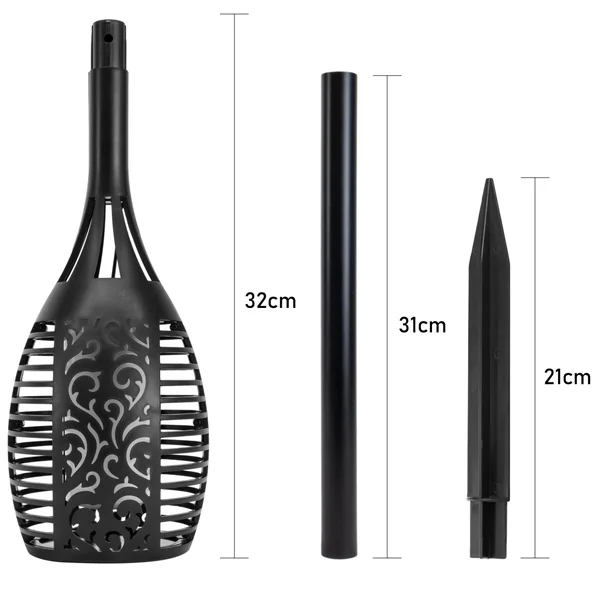 Die Gartenfackel besitzt eine Gesamtlänge von 78cm inkl. dem 18cm langen Erddorn mit dem die Fackel aufgestellt werden kann.