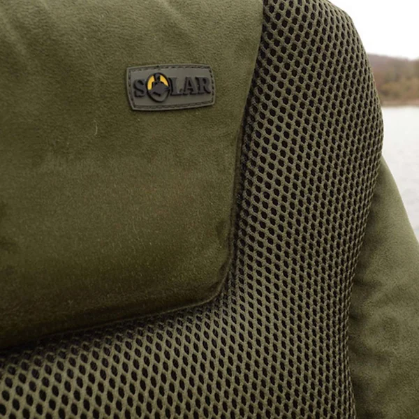 Wie auch die Solar Tackle SP C-Tech Liegen ist auch der SP C-Tech Recliner Chair aus dem exklusiven 3D DuraDore™ Material gefertigt. Die Lufteinschlüsse in diesem Material gewährleisten einen sehr bequemen Sitz, auch über einen längeren Zeitraum hinweg. Durch den Aluminiumrahmen ist der Stuhl zudem ein echtes Leichtgewicht. Wie auch die Liegen haben auch alle Stühle der Solar Tackle SP Range den Spring-Loc Verstellmechanismus für die Beine. Der Stuhl ist 3-Stufig verstellbar. Wie auch die Liegen wird der Stuhl inklusive eines Chair/Bedchair Organizers geliefert, welcher natürlich abnehmbar ist. Die Sitzhöhe im nicht ausgezogenen Zustand beträgt 36 cm.