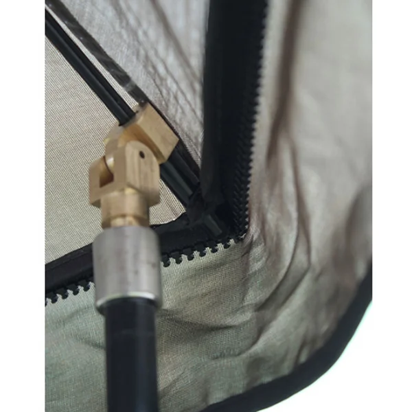 Befestigen Sie Stormcaps an den Enden der Schirmstreben & die Sturmstangen (Banksticks) an den Stromcaps. Nun steht der Sirm auf den Strumstange (Bankstick) und die Mittelstange kann entfernt werden. Ganz klarer Vorteil: mehr nutzbarer Platz im Schirminneren.