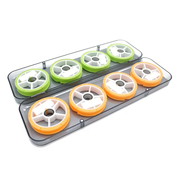 Dieser Vorfachspulenbehälter von Troutlook enthält 8 Vorfachspulen auf denen Sie Ihre fertigen Vorfächer aufwickeln können. Jede Spule hat einen großzügigen Durchmesser von 70mm und eine Höhe von 14mm. Die Spulen sind aussen vollständig mit Silikon verkleidet – Kein rutschen der Schnur mehr beim aufwickeln der Vorfächer. Auf den Spulen haben Sie die Möglichkeit Ihre Vorfächer sortiert zu transportieren. Die verschiedenen Farben ermöglichen eine schnelle Unterscheidung. Zudem können Sie Spulen mit einem abwaschbaren Stift beschriftet werden.