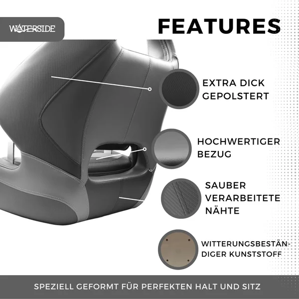 Mit dem „Captain Race Seat Dark Series“ stellt Waterside einen Bootssitz vor, der speziell für sportliche Fahrer entwickelt wurde und durch sein innovatives Design sowie seinen hohen Komfort überzeugt. Dieser Sitz vereint sportliche Ergonomie und Eleganz, perfekt für Bootsbesitzer, die Wert auf Performance und Stil legen.