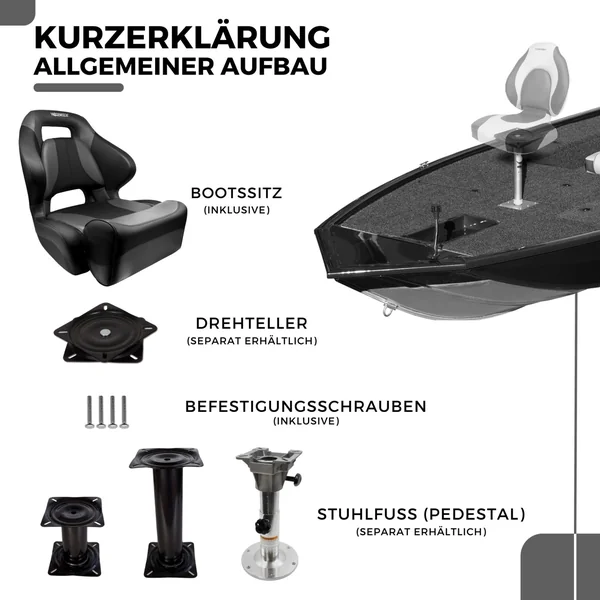 Die stabile Konstruktion des Sitzes gewährleistet eine lange Lebensdauer, auch unter intensiver Nutzung. Mit 8 eingelassenen Gewinden am Boden ist eine sichere und feste Montage auf dem Boot garantiert.