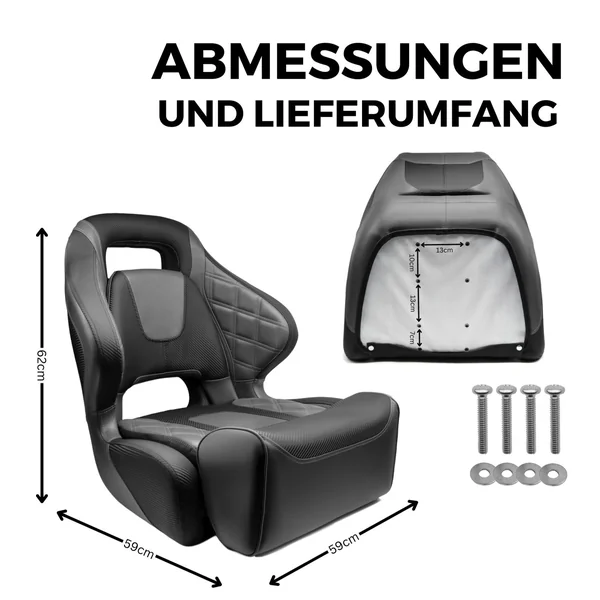Ein komfortabler, stabiler und optisch hochwertiger Bootssitz für anspruchsvolle Nutzer. Der Captain Seat GTR Super Dark Series überzeugt durch seine klappbare Sitzfläche, das moderne Design und eine robuste Bauweise – perfekt für Angel- und Freizeitboote.