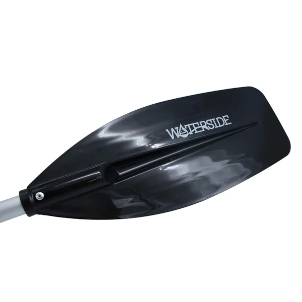 Das Aluminiumrohr mit dem Durchmesser von 25mm von Waterside hat eine effektive Kraftübertragung auf das hochwertige Paddelblatt, dass ein Maß von 44cm x 17cm misst.