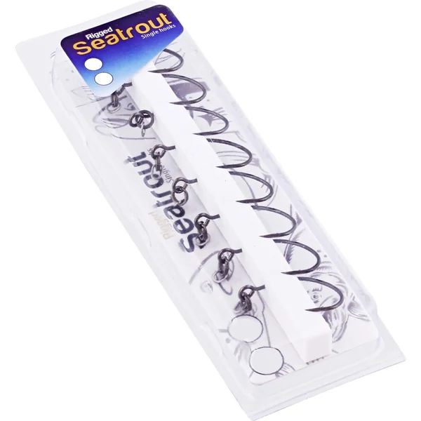 Mit den vormontierten Seatrout Single Hooks wird es dem anspruchsvollen Angler leicht gemacht, der nur die besten Haken hinter seinen Ködern haben möchte. Die Kombination aus dem geschlossenen, oval geschweißten Ring, einem superstarken Sprengring und einem ultrascharfen Einzelhaken sorgt sowohl für den richtigen Abstand zum Köder als auch für eine große Bewegungsfreiheit, die ein optimales Anhaken des Fisches gewährleistet. Das Rig ist bereits fertig und „Ready to Fish“, so dass du nur noch die Schnur befestigen musst und schon kannst du den Fisch deines Lebens haken!