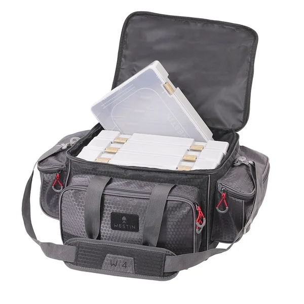Der Name ist Programm – der W4 Jumbo Lure Loader wird mit 4 Westin-Boxen geliefert, in die alle deine großen Lieblingsköder passen. Diese Tasche hat große Fächer, in die jede Art von Zubehör passt. Eine der Taschen ist mit einem elastischen Werkzeugorganisator ausgestattet, um Zangen und Werkzeuge an der richtigen Stelle zu halten.