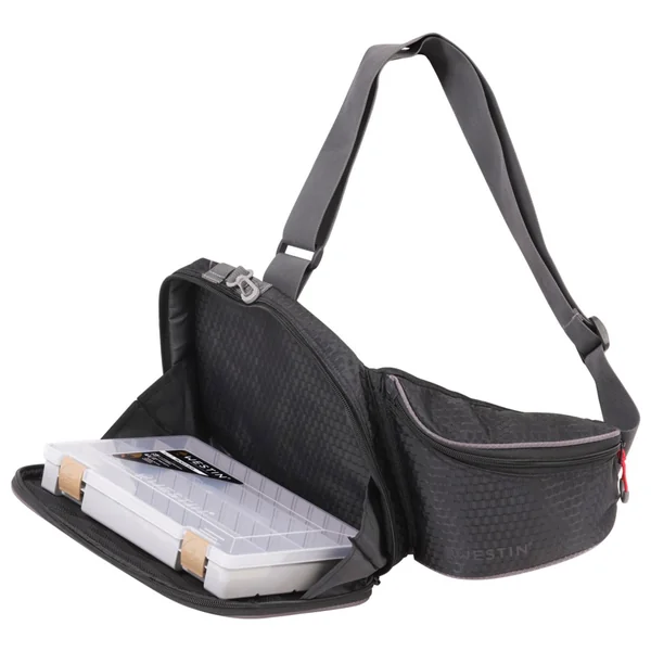 Lass‘ die W4 Street Sling auf deinem Rücken hängen und hole sie nach vorne, wenn es Zeit für einen Köderwechsel wird. Dank des Klappsystems bleibt die Köderbox an ihrem Platz und du kannst dich ganz auf die Auswahl des richtigen Köders konzentrieren. Die Tasche verfügt über einen 360°-Hakenwirbel zur Befestigung deines Zubehörs, einen Werkzeuggurt mit Klettverschluss und einen Schnellverschluss. Im Inneren der W4 Street Sling findest du eine große Netztasche.